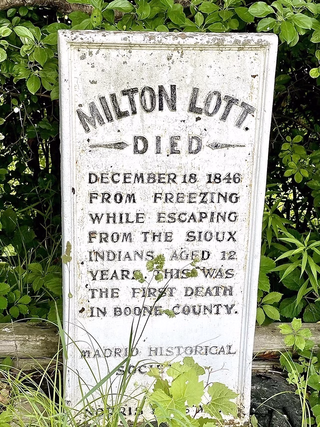 About a month later, Lott returned to the riverbank to bury Milton near the spot where the body had been found. That grave site was later marked in 1905 by the Madrid Historical Society. Tragedy continued to follow the family—Lott’s wife died soon after, leaving him alone and consumed by loss.