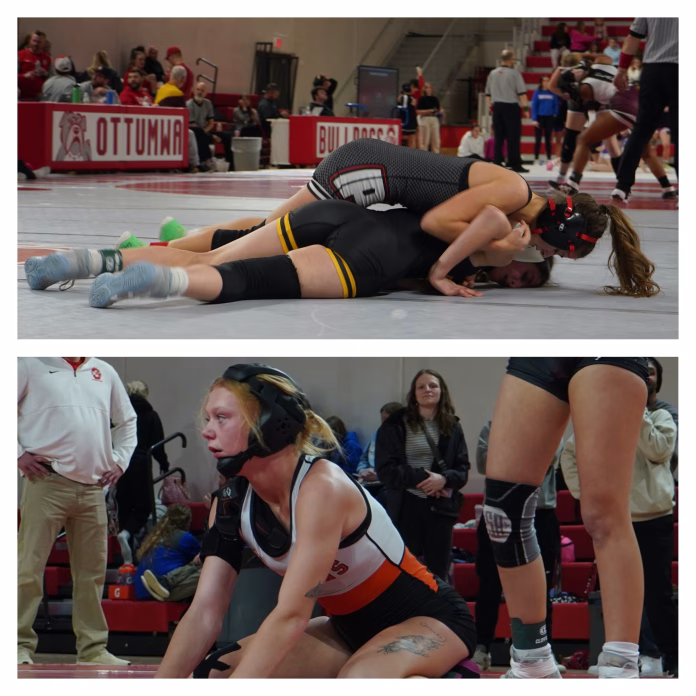 Fairfield and Pekin girls wrestling teams competed Monday night, January 12th, at Ottumwa High School as the final event of a week-long wrestling extravaganza. After boys high schoolers competed in a two-day tournament on Friday and Saturday, and youth wrestlers took over on Sunday, the high school girls closed out the festivities on Monday.
