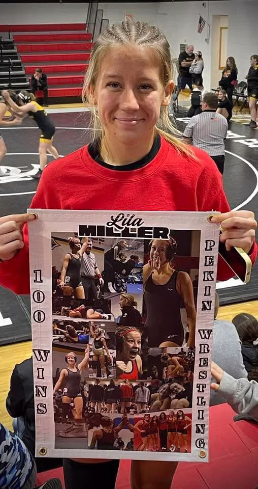 The senior had a memorable Senior Night last Thursday. Miller won her 100th career match after winning both of her matches in a triangular versus BGM and Lone Tree. Pekin went on to win the triangular.