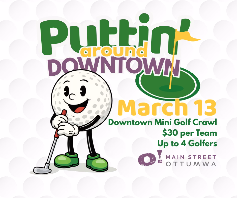 – Main Street Ottumwa is excited to announce the return of Puttin’ Around Downtown, a fan-favorite mini golf crawl through downtown Ottumwa, taking place on Thursday, March 13 from 3pm to 7pm. After a brief hiatus, the event is back by