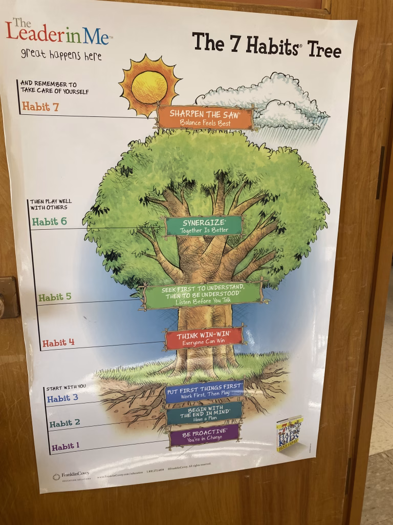 “For the last almost eight years, we’ve been fully implementing it. We started with the staff and then we moved it into the students and surely it was a big piece that helped us support our teachers through COVID and everything that has happened in the Fairfield community. It was really like focusing on ourselves. Underneath the ground, those are those first three habits. They start with you—being proactive, beginning with the end in mind, and putting first things first. That piece of you can’t help others until you help yourself, that’s the big mentality behind it.”