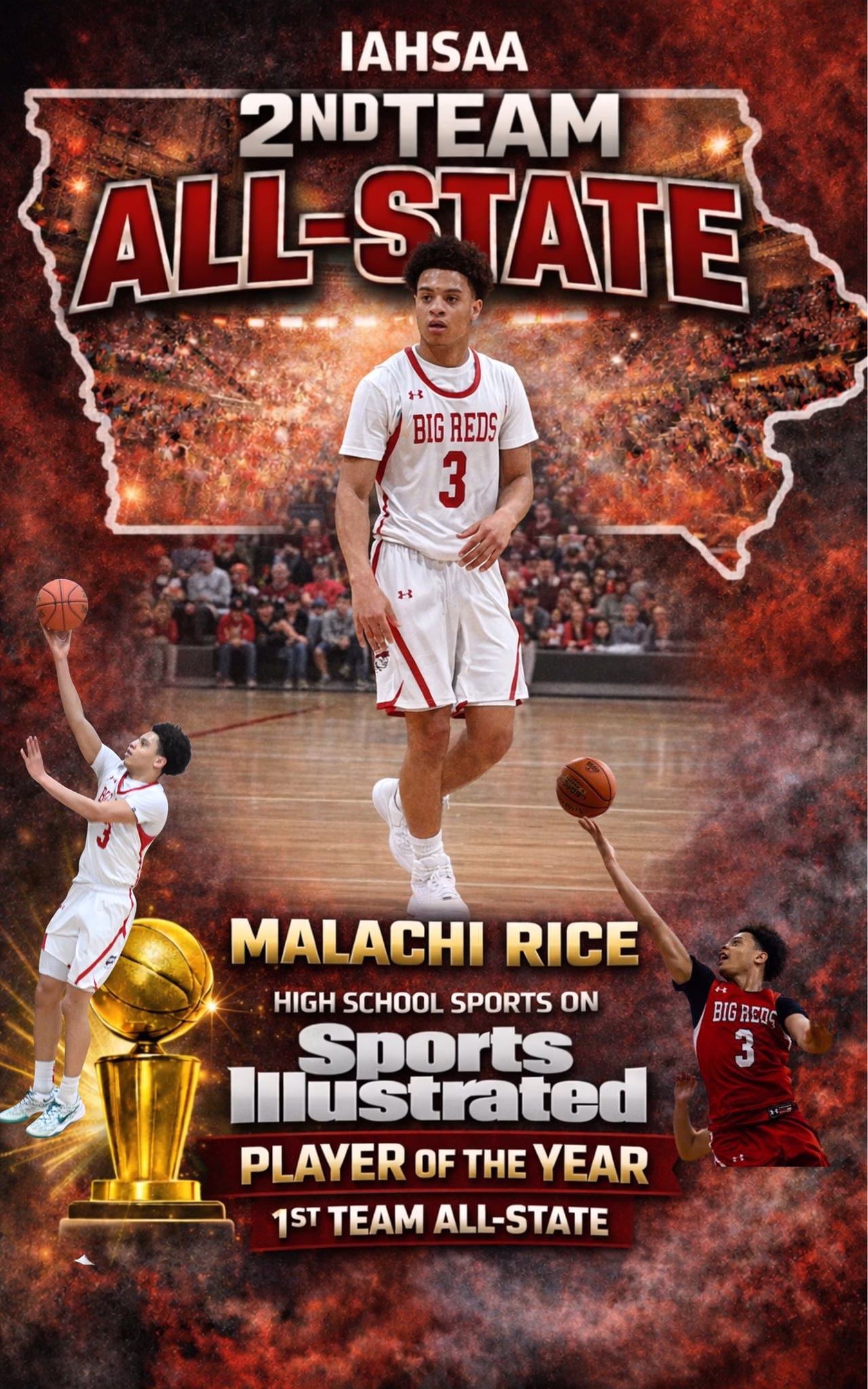 The senior capped off his historic high school career by leading the entire state of Iowa in scoring (30.2 points a game). Rice was named to the Class 2A All-State second team and was Sports Illustrated’s Class 2A High School Player of the Year.