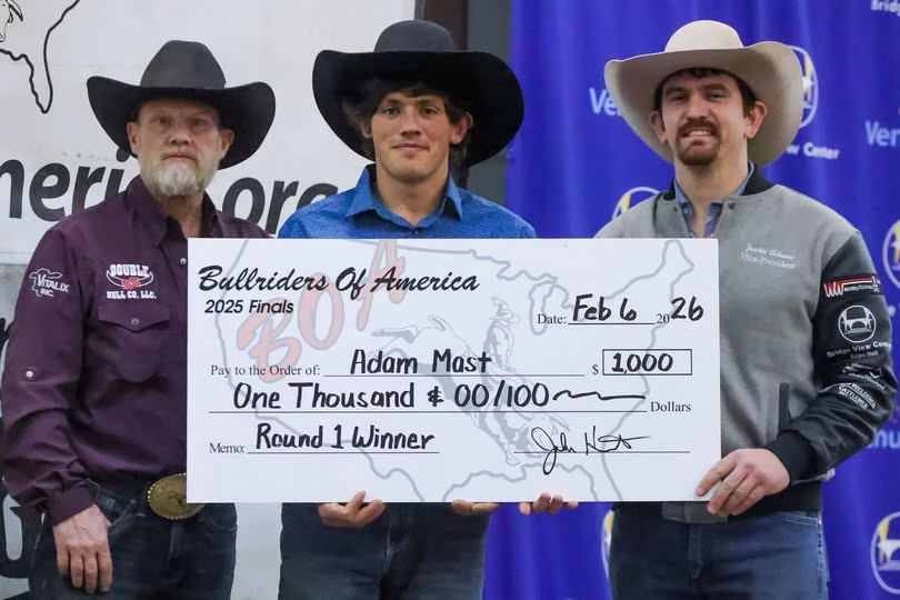Round one of the BOA Finals kicked off with a strong showing from Adam Mast, who claimed the early lead with an impressive 86-point ride aboard “Huskers Pride” from Big Bucks ProRodeo. His performance set the tone for what quickly turned into a highly competitive event.